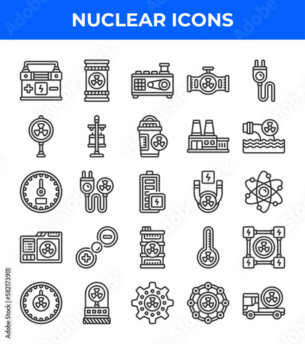 Nuclear line icon. Related to reactor, accumulator, machine, pipe, power, atom. Editable stroke. Vector illustration