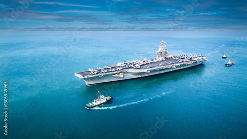 Nuclear war ship, Navy ship, Military navy. nuclear carrier running in the ocean. Military navy ship carrier full loading fighter jet aircraft for prepare troops.