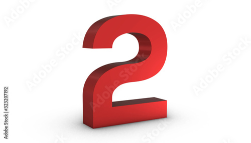 Number 2 Two Red Sign 3D Rendering Isolated on White Background