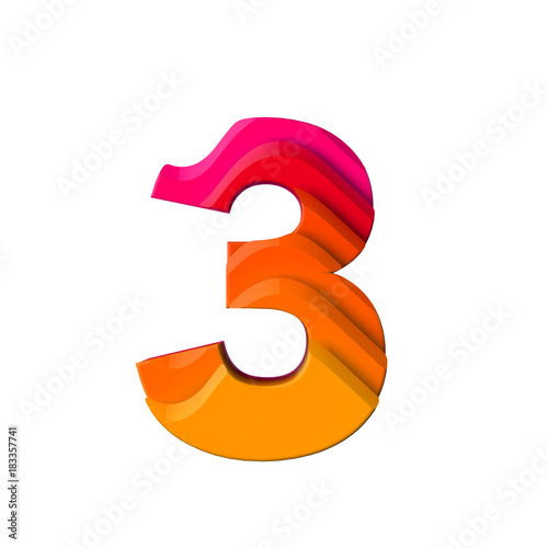Number 3. Layered wave effect character type. 3D Rendering