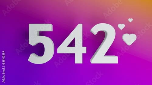Number 542 in white on purple and orange gradient background, social media isolated number 3d render