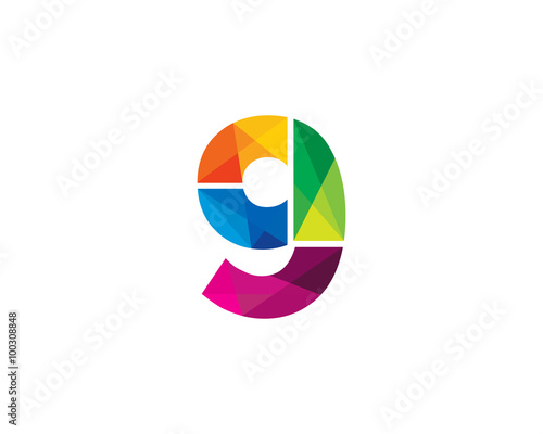 Number 9 Color Poly Logo Design