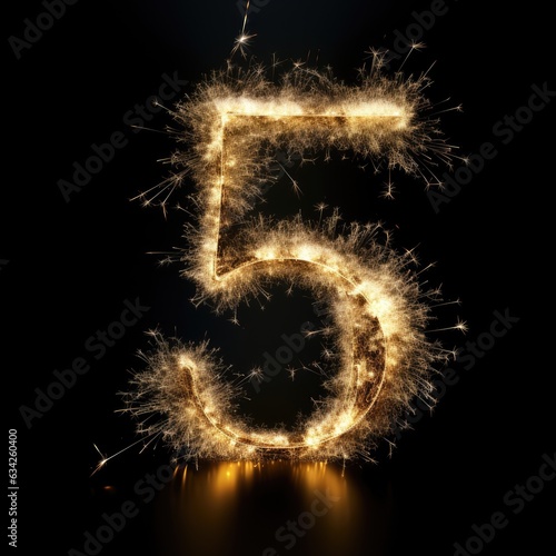 number five made of sparkling sparklers on black background - created using generative Ai tools
