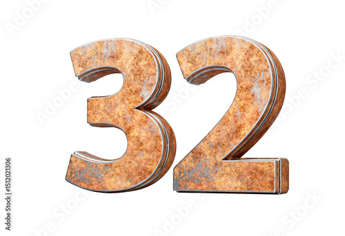 Number Thirty Two 32 Digit Made Of Old Rusty Iron Metal Texture 3d Illustration