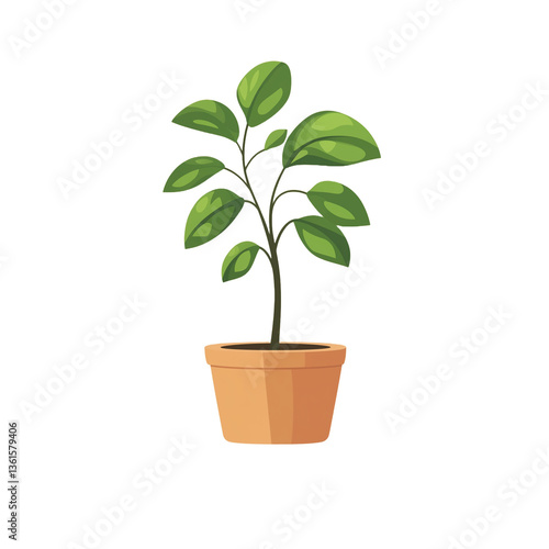 Nurturing Greenery: A vibrant green houseplant thrives in a clay pot, symbolizing growth and life. Perfect for illustrating concepts of nature, interior design, or environmental sustainability.