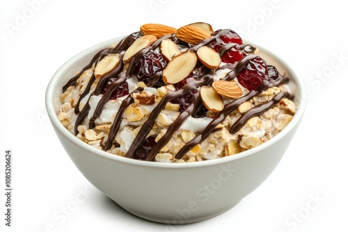 Oatmeal with cherries, almonds, and chocolate.