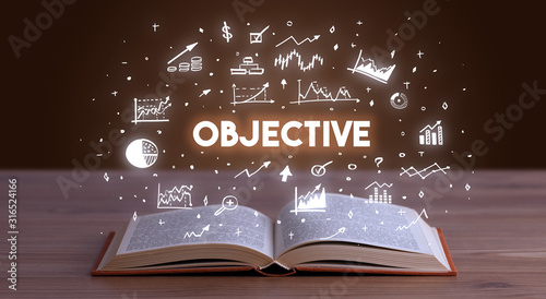 OBJECTIVE inscription coming out from an open book, business concept