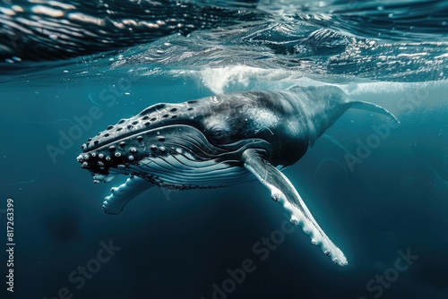 Ocean Animal: Cute Baby Humpback Whale Diving in Clear Blue Water