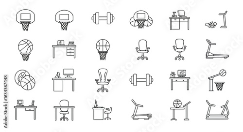 Office and Sports Equipment Outline Icons Representing a Balanced Lifestyle Concept