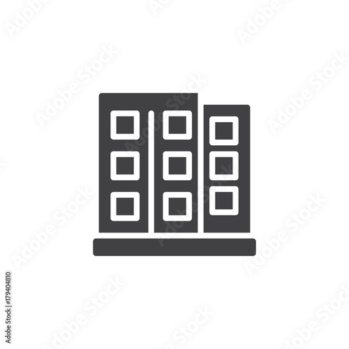Office building icon vector, filled flat sign, solid pictogram isolated on white. Hotel, apartment symbol, logo illustration.