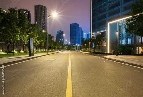 Office buildings and highways at night in the financial center, chongqing, China
