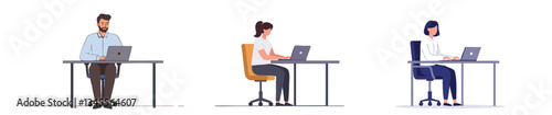 Office workers at desk illustration with plain white background, AI file