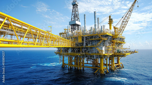 Offshore Oil and Gas Platform, Industrial Energy Facility, Marine Drilling Rig, Petroleum Extraction, Offshore Operations, Energy Industry, Large-Scale Infrastructure