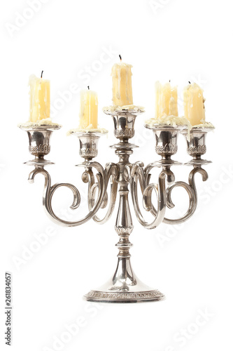 Old candlestick with candles .