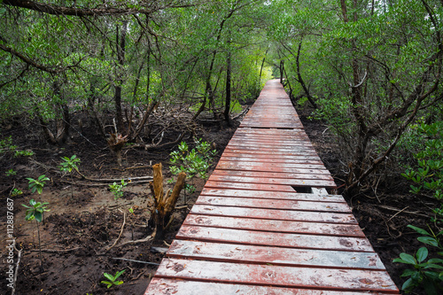 Old grunge wooden path in mangrove forest