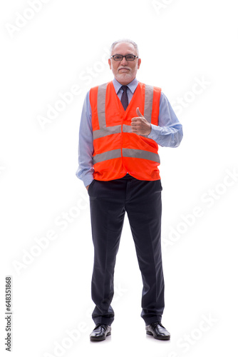 Old male architect isolated on white