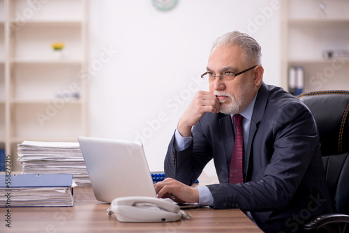 Old male boss working at workplace