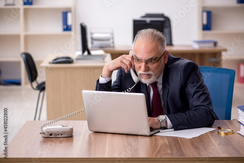 Old male employee working in the office