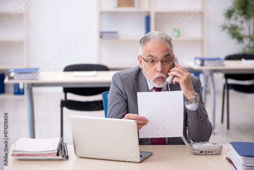 Old male employee working in the office