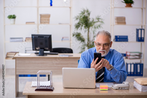 Old male employee working in the office