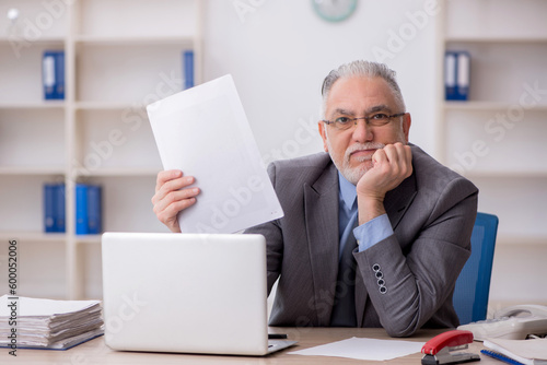 Old male employee working in the office
