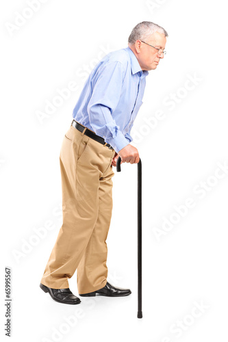 Old man walking with cane