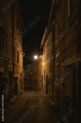 old mediterranean alley at night in acquapendente, italy
