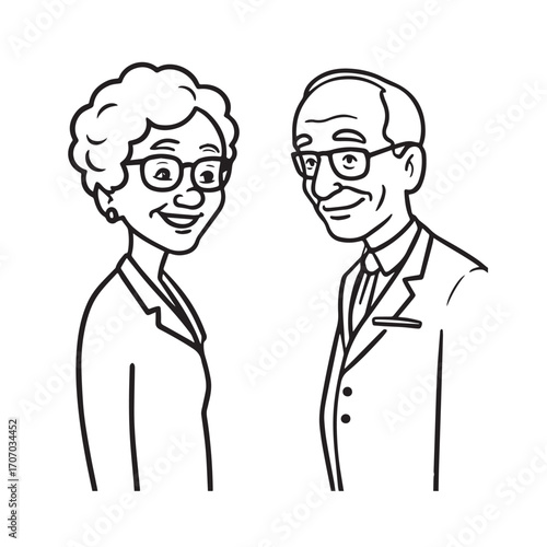 Old people black and white illustration vector image simple minimalist artwork design template