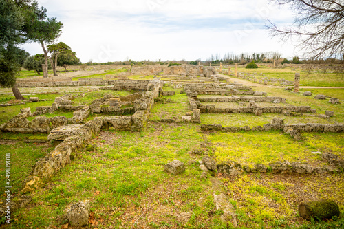 Old ruins of ancient Greek city in Paestum, Italy