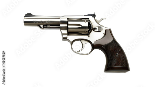 Old Silver Revolver on Transparent Background