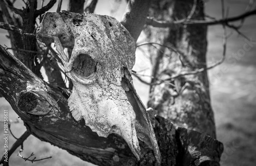 old skull of an animal (goat or ram)