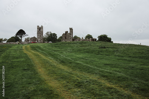 Old Stone Castle on a Green Grass Hill, Ireland