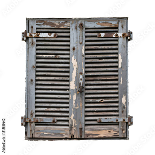 Old weathered wooden window shutters isolated on transparent background