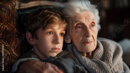 Older Woman and Young Boy Sitting Together