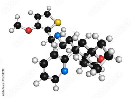 Oliceridine painkiller drug molecule, illustration