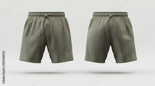 Olive Green Mens Drawstring Shorts Mockup Front Back View