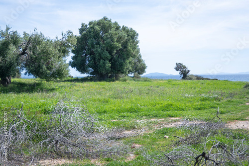 Olive groves at Sithonia coastline near Kastri Beach, Chalkidiki, Greece