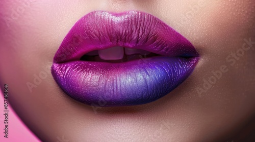 Ombre lipstick effect on woman's lips - A creative close-up of lips with an ombre lipstick effect, blending two colors seamlessly