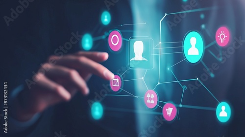 Onboarding concept. Person touch virtual onboarding icon for human resources business industry to introduce newly hired employee into an organization with behavior, welcome, knowledge, and skill