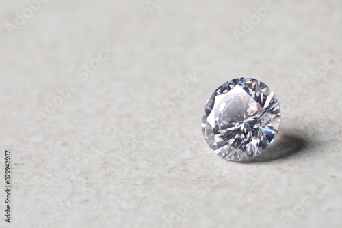 One beautiful shiny diamond on light background, closeup. Space for text