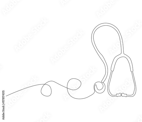 One continuous line drawing of stethoscope. Single line of stethoscope vector illustration