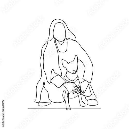 One continuous line drawing of the people is play with their pet carrying it as vector illustration. Playing with dog activity illustration in simple linear style vector concept. Animal themes design.