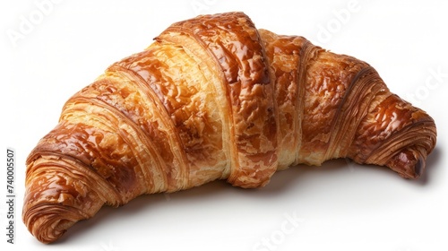 One croissant closeup, isolated on white background.