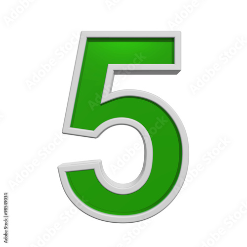 One digit from green glass with white frame alphabet set, isolated on white. Computer generated 3D photo rendering.