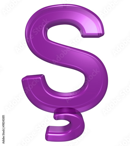 One letter from purple glass alphabet set, isolated on white. Computer generated 3D photo rendering.