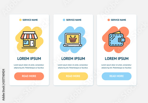 Oneboarding App Screens Cards E-commerce Set. Vector
