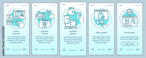 Online shopping onboarding mobile app page screen with linear concepts. Digital purchase. Internet marketing. E-commerce. Steps graphic instructions. UX, UI, GUI vector template with illustrations