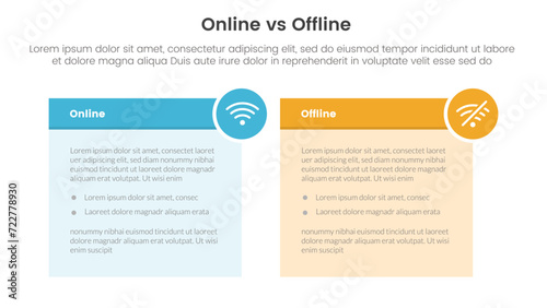 online vs offline comparison or versus concept for infographic template banner with table box and circle badge with two point list information