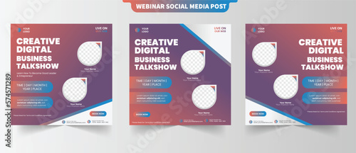 Online webinar of digital marketing business with company logo and icon for social media post with editable photo template