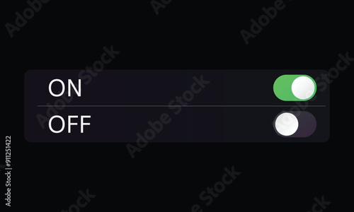 On-Off Toggle Switch Button Settings Screen Mockup. Vector Illustration